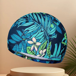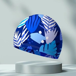 夏を楽しむ:ユニセックス、脱落しない - ファッショナブルなプリントの通気性のある布製スイミングキャップ、高弾性、通気性があり、頭を締め付けません。