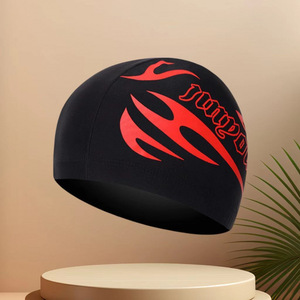 夏を楽しむ:赤い炎はユニセックスで落ちません - ファッショナブルなプリントの通気性のある布製スイミングキャップは、伸縮性が高く、通気性があり、頭を締め付けません。