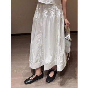 チャオ級おすすめ!ファッショナブルで多用途な女性用痩身スカート、夏の甘いハイウエスト気質、年齢を減らす白いロングスカート
