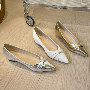 6318-8 フレンチスタイルツイストノットインナーハイトシューズ女性用ウェッジヒールポインテッドトゥ多用途フラットシューズ3CM