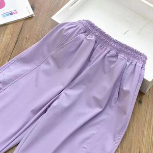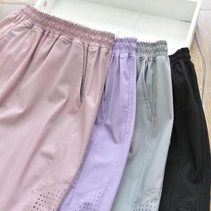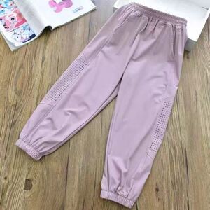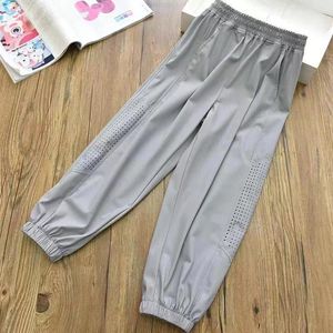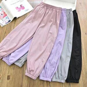 女の子の速乾性パンツ夏薄い通気性子供用微弾性アイスシルクスポーツパンツ新しい中型および大型子供用ルーズ