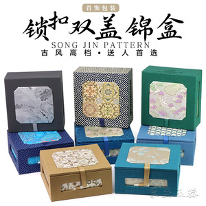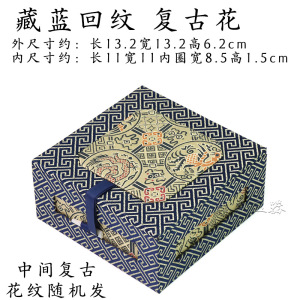 藏蓝回纹 复古花;锁扣双盖锦盒