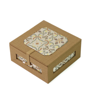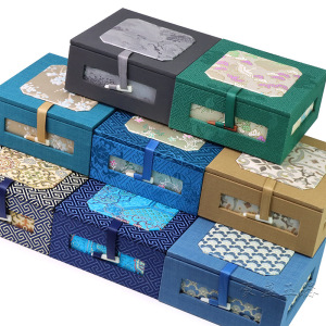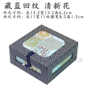 藏蓝回纹 清新花;锁扣双盖锦盒
