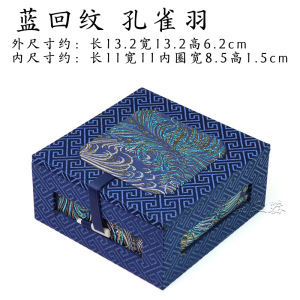 蓝回纹 孔雀羽;锁扣双盖锦盒
