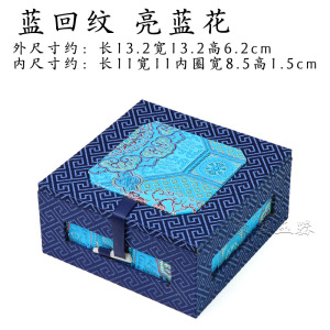 蓝回纹 亮蓝花;锁扣双盖锦盒