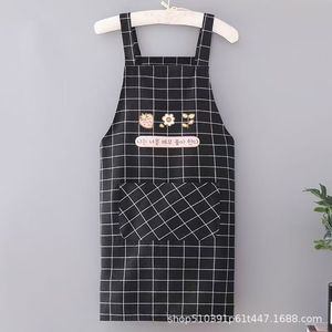 綿布日本と韓国版エプロンファッショナブルな家庭用キッチン調理エプロン 2025 新しいプリントケータリング作業服