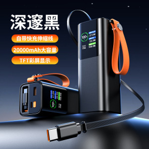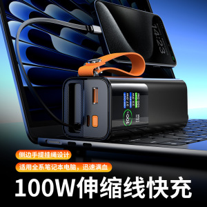 跨境新款20000mAh充电宝伸缩线100W快充移动电源60W爆款源头厂家