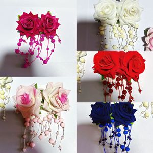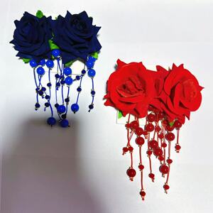 カラフルな立体的な大きな花のタッセルペンダントイヤリング、誇張されたロングスタイル、模擬花の手作りローズイヤリング、クロスボーダー