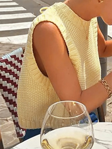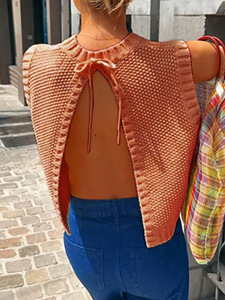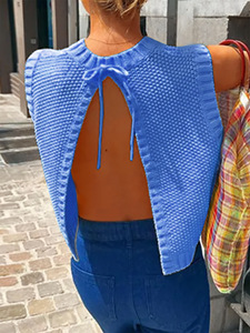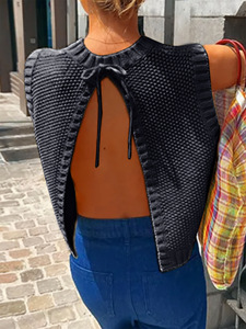貿易クロスボーダーヨーロッパとアメリカのアマゾンソースメーカー女性用セーター、ラウンドネックバックレスベストプルオーバー、春と夏
