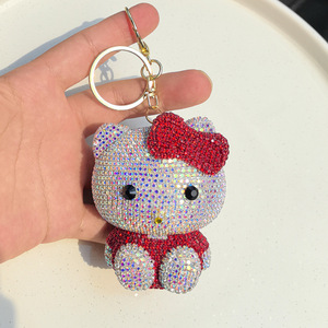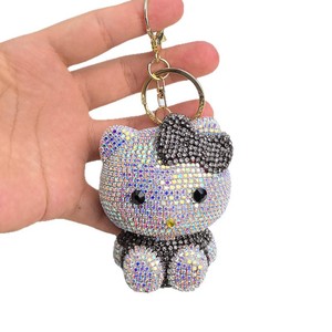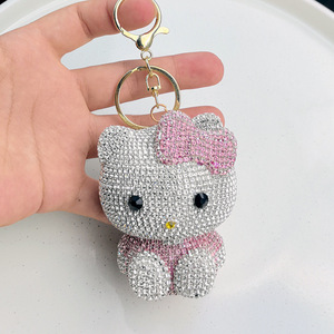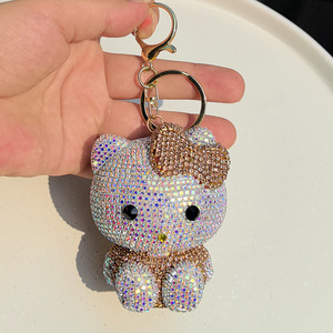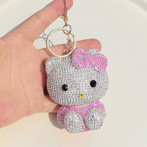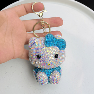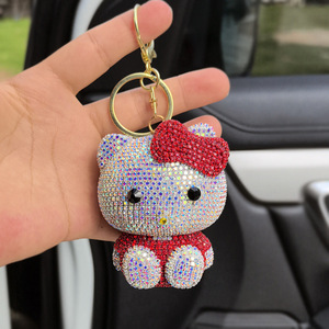 車のキーホルダークリエイティブ猫漫画動物キーホルダーダイヤモンドペンダントガラスラインストーンバッグペンダントギフト