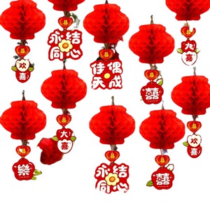 結婚式の新しい小さな提灯吊り下げ装飾結婚式の部屋のレイアウトハニカム田舎の庭の結婚式のツリーの赤い装飾用品