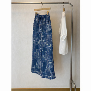 強くお勧めします!!リネン混紡、ゆったりとした伸縮性ウエストのホリデースタイルプリントワイドレッグスリムカジュアルパンツ女性用