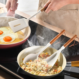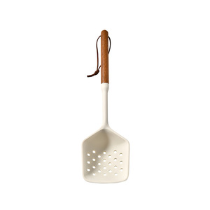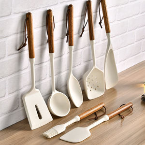 白いアカシアの木のハンドルシリコンキッチン用品高温耐性スパチュラ調理スパチュラ日常使用キッチンスープスプーンスクレーパー鍋スプーン