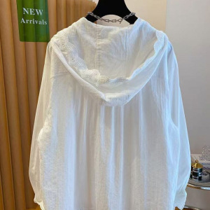 白色花边拼接连帽衬衫女长袖2025新款宽松休闲感衬衣帽衫上衣