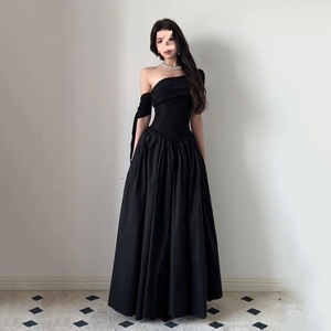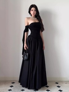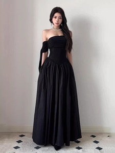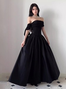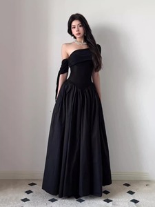 フレンチヘップバーンスタイルのワンショルダーリボン大きなスカートの黒のドレス女性の夏の新しいスタイル痩身気質