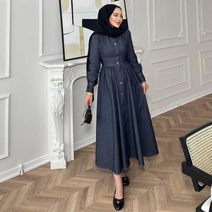 218702跨境女装气质时尚牛仔复古休闲收腰大摆长款连衣裙工厂直销