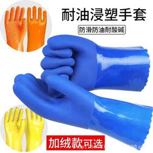 アップグレードされた厚みのある労働保護ゴム手袋、工業用ゴム、防水、耐油、耐酸、耐アルカリ、完全にゴムで浸漬された、滑り止めと耐摩耗性