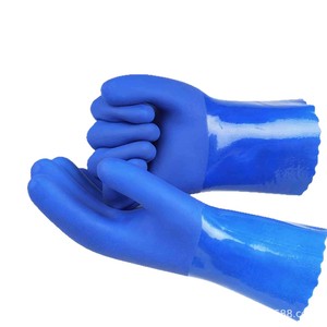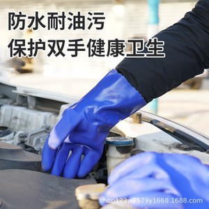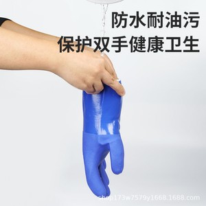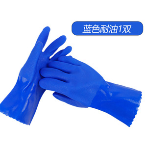 27cm ブルー耐油手袋: ベルベットスタイル、フリーサイズ