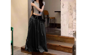 韓国風夏ハイウエストカジュアルスカート、甘くてクールなホットガール通勤着用Aラインロングスカート、大きな裾のアンブレラスカート