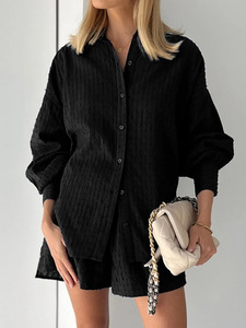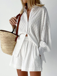 2025 夏のヨーロッパとアメリカの女性のシャツジャカードパフスリーブ気質トップショーツ通勤デザインカジュアルスーツ