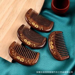 ナチュラルブラックゴールドサンダルウッドコーム、オリジナル木製彫刻ポケットコーム、女の子用家庭用ヘアスムージングサンダルウッドギフトクラフトコーム