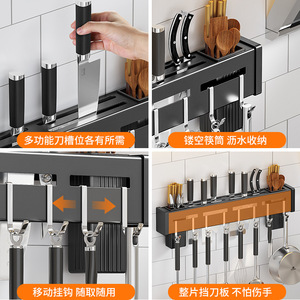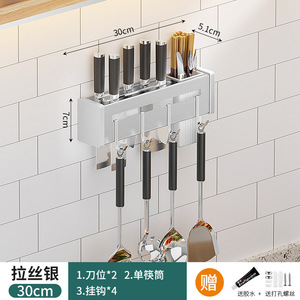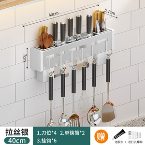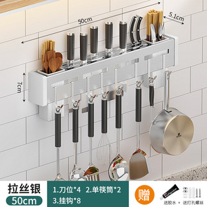 ステンレス鋼のナイフホルダーキッチンパンチフリー壁掛け収納ラック箸ホルダー家庭用多機能オールインワンナイフ収納ラック
