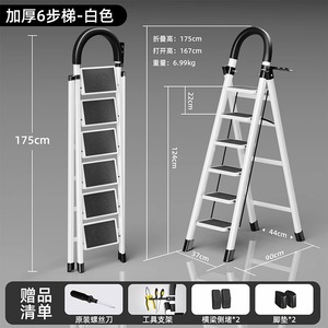 白い厚みのある[6段はしご]アップグレードされたバックル★安定して揺れない - 家庭用はしご