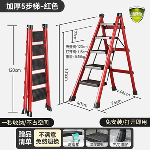 赤の厚みのある[5段はしご]アップグレードされたバックル★安定して揺れない - 家庭用はしご