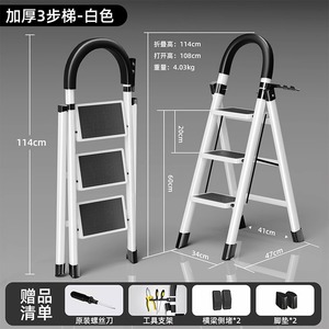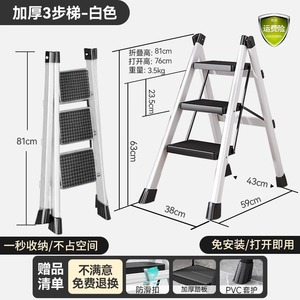 白い厚みのある[3段はしご]アップグレードされたバックル★安定して揺れない - 家庭用はしご
