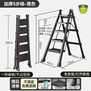 黒の厚みのある[5段はしご]アップグレードされたバックル★安定して揺れない - 家庭用はしご