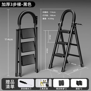 黒の厚みのある[3段はしご]アップグレードされたバックル★安定して揺れない - 家庭用はしご