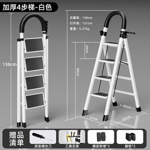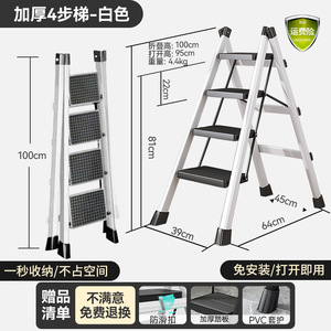 白い厚みのある[4段はしご]アップグレードされたバックル★安定して揺れない - 家庭用はしご