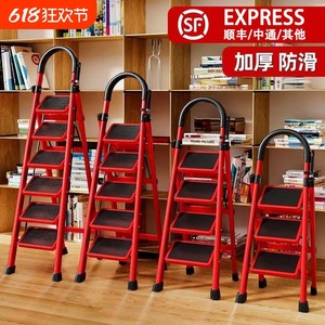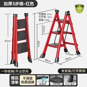 赤の厚みのある[3段はしご]アップグレードされたバックル★安定して揺れない - 家庭用はしご