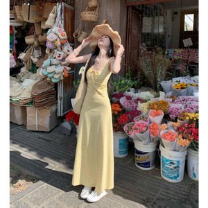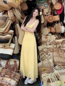 新しいサスペンダードレスの女性の夏 2025 スーパーホットな新しいフレンチウエスト花柄ロングスカートハイエンドスカート