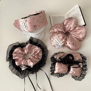 ピンクのサテン猫水玉模様のヘアバンドヘアバンドクリップ女性の甘くてかわいいトレンディな多用途のファッショナブルなヘッドバンドヘアアクセサリー