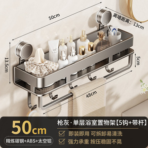 【吸盤・ガンアッシュ】二層 50cm+フック5個+タオルバー1個