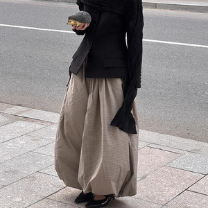 夏の新しいスタイルの茶色のチェック柄の女性用ルーズバブルパンツ、ファッショナブルでカジュアルなデザイン、2025年の国境を越えた通勤