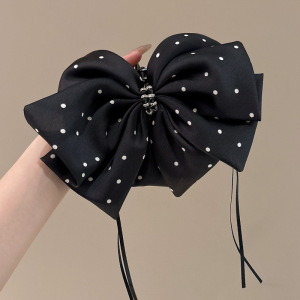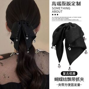 14#【ハーフタイショールヘアクリップ5cm】ダイヤモンドが輝くロングリボン