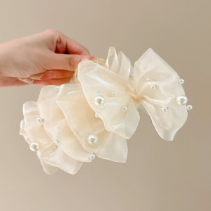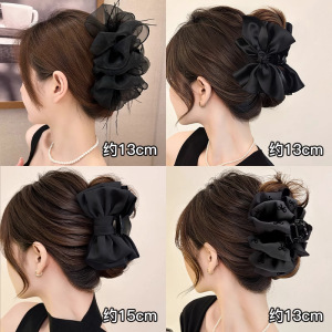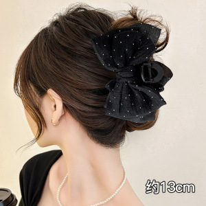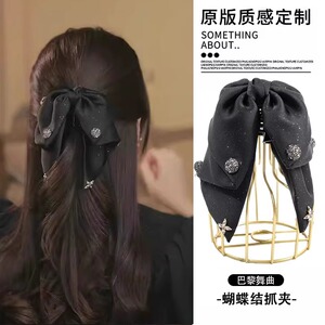 ハイエンドフレンチレトログリッパー両面シアサッカーボウヘアグリッパー後頭部ヘアシャーククリップヘアアクセサリー女性用