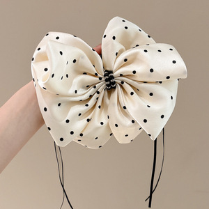 オフホワイトの水玉リボンクリップ~下クリップ約7cm