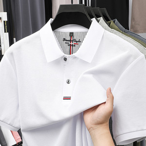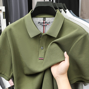 2025 新しい夏のカジュアルポロシャツメンズ無地薄い中年弾性通気性ラペルメンズ tシャツ