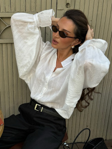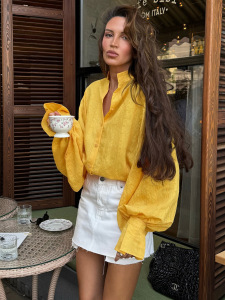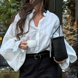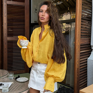 秋の新スタイルヨーロッパとアメリカンスタイルのスタンドカラールーズシャツ長袖デザイン気質ファッションカジュアル2025クロスボーダー通勤