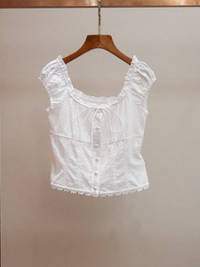 深セン南友ハイエンド婦人服夏の新しいフレンチスタイルの新鮮な半袖リボンU字型襟刺繍トップ女性用