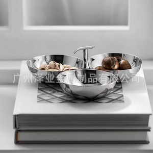 ヨーロッパの 304 ステンレス鋼の 3 ヘッドスナックプレートクリエイティブティートレイレストランコーヒーテーブルフルーツスナックドライフルーツハンドルフルーツ
