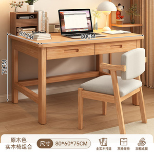【双抽书桌+实木椅】【0.8米】原生松木