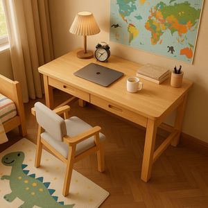 【双抽书桌+实木椅】【1.2米】原生松木