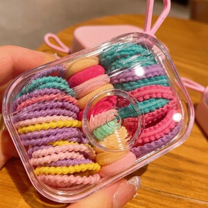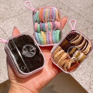 カメラ型箱入りヘアロープ、キャンディーカラーの子供用タオルリング、髪を傷つけない、高弾性ヘアリング、ベビーカラーの万能ヘアロープ