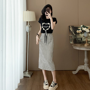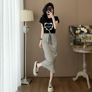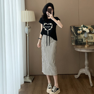 2025超人気年齢軽減ユニークで美しいスーツスカートカジュアルファッション気質半袖スカートツーピースセット女性夏