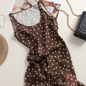 【在庫あり】欧陽ナナと同じ高級水玉サスペンダーワンピース着痩せイレギュラーロングスカート