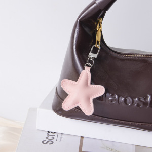 クロスボーダー小型充填綿 pu 五芒星ペンダント携帯電話ケースバッククリップ DIY アクセサリー革スターキーホルダー卸売